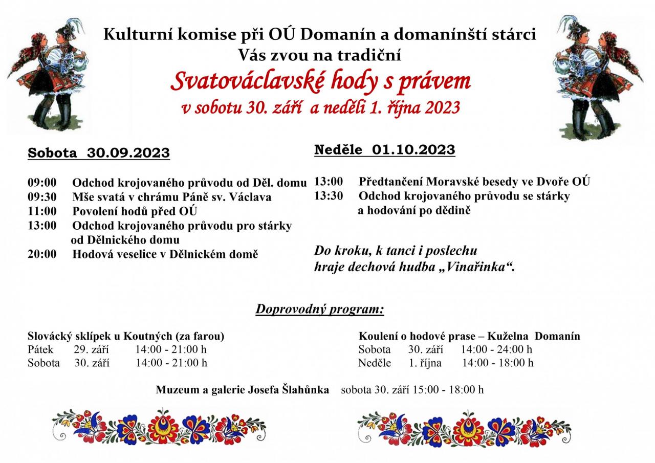 Kulturní komise při OÚ Domanín a domanínští stárci Vás zvou na tradiční Svatováclavské hody s právem.