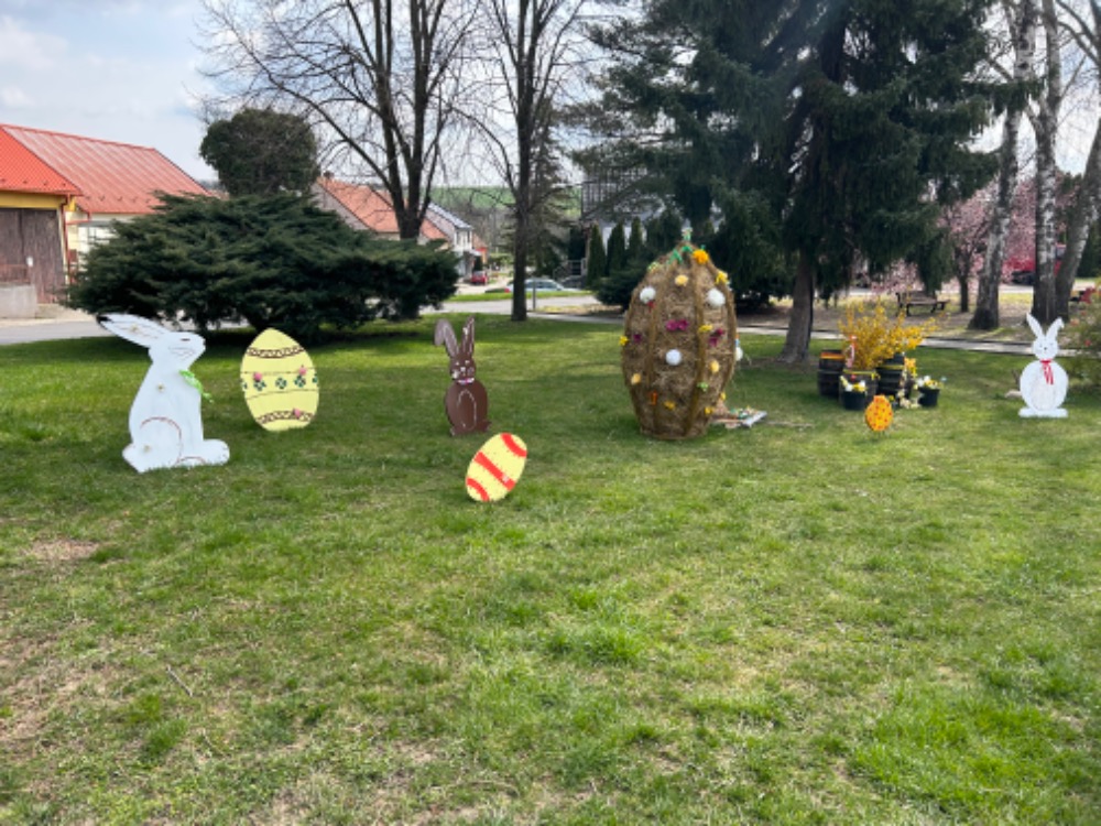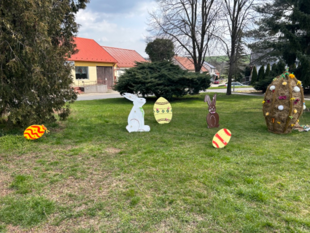 Fotogalerie velikonoční výzdoby v Těmicích na zastávce a u školky.